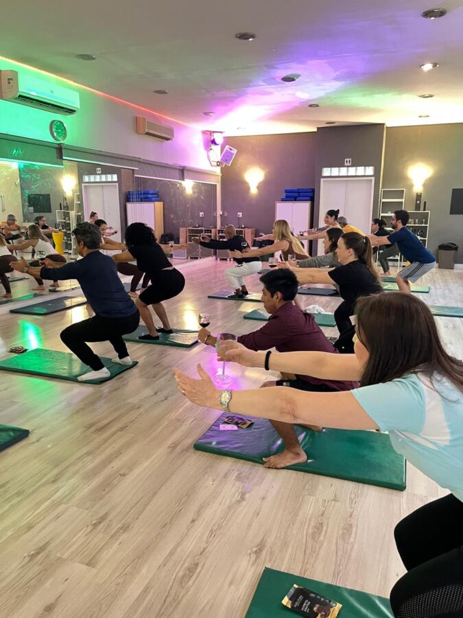 Sob a condução da talentosa professora Selma Marques e sua sócia Michelle Sposito, a tarde foi marcada por energia contagiante, risadas e momentos de conexão. Para acompanhar, vinhos, queijos e Kombucha garantiram o clima perfeito para todos os gostos.